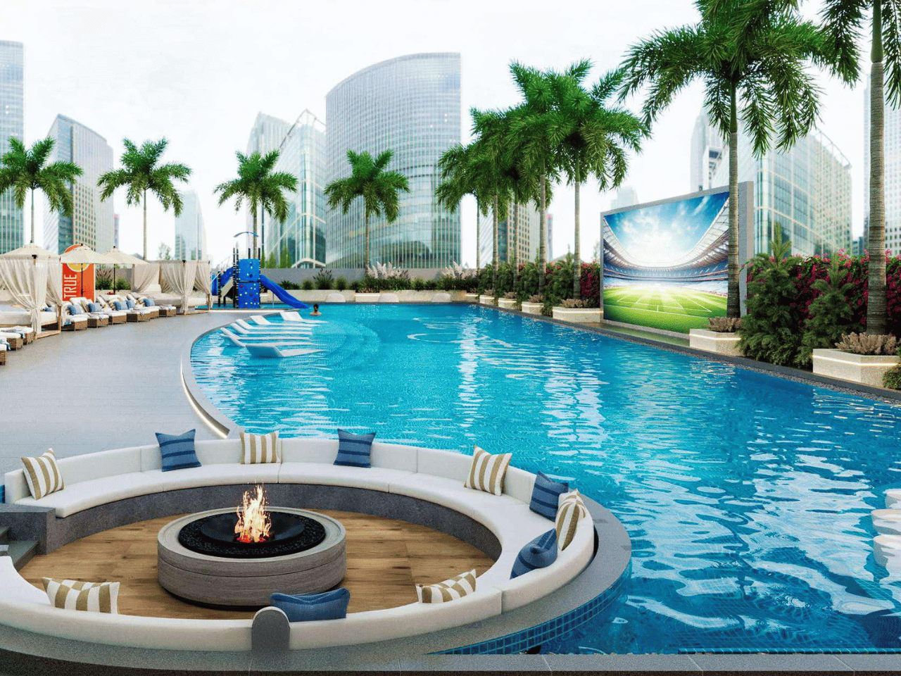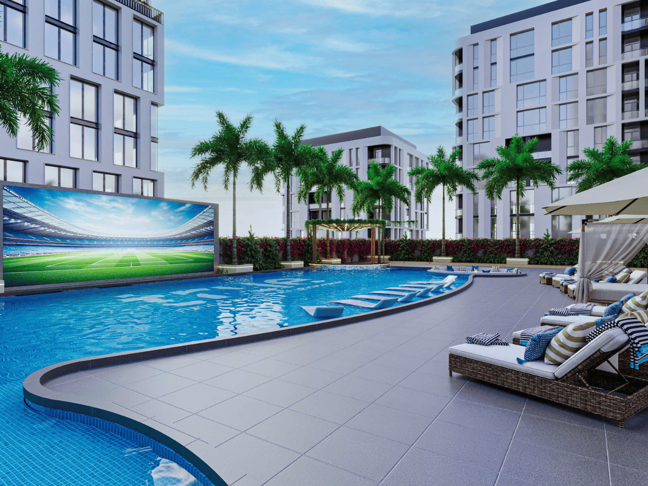 Rising 17 storeys high, Future Residences redefines modern urban living with a perfect blend of comfort and innovation. Each apartment is fully furnished with elegant décor, hidden lighting, and a smart home system for everyday ease. Residents will enjoy access to exceptional facilities such as an outdoor cinema beside a 36-meter pool, landscaped areas, and wellness spaces designed to bring relaxation and community together.