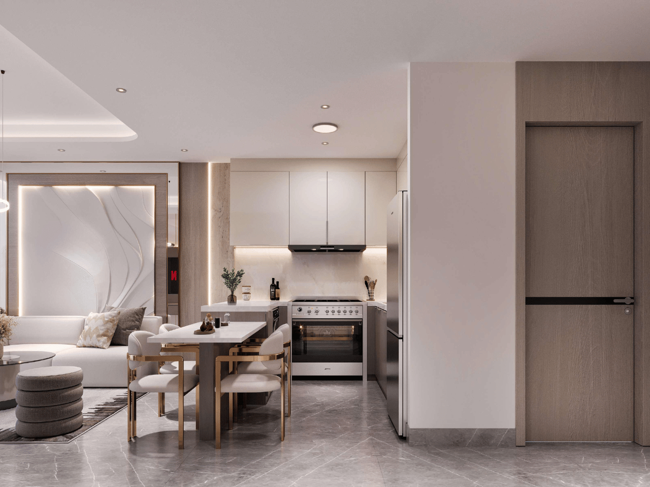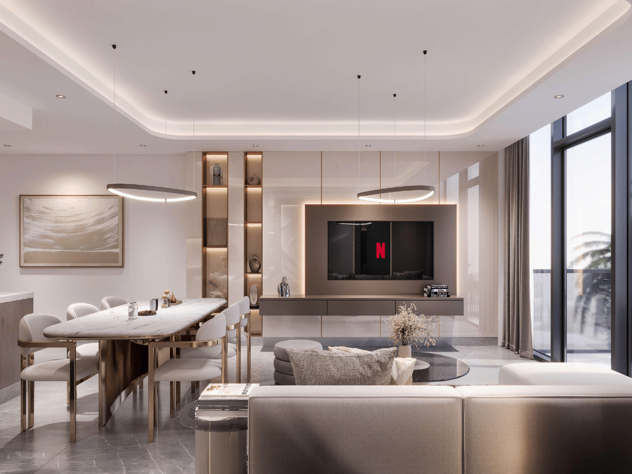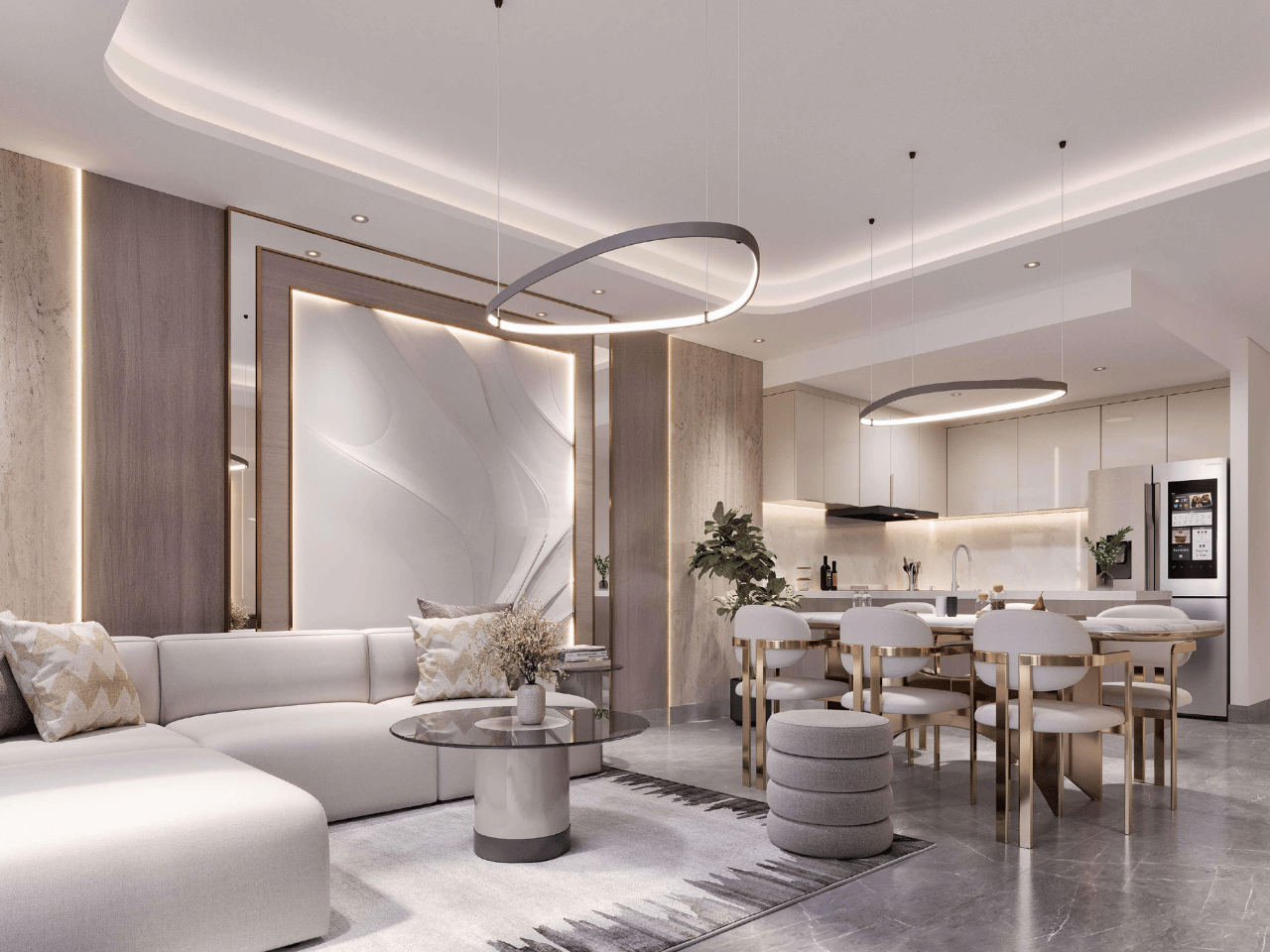 Future Residences offers beautifully designed one and two-bedroom apartments that combine elegance, light, and comfort. Large windows welcome the glow of sunrise and sunset, filling each home with a warm natural tone that enhances its modern interiors. Every space is crafted with care, from refined finishes to intuitive layouts, creating a calm and sophisticated atmosphere that feels both luxurious and livable.
